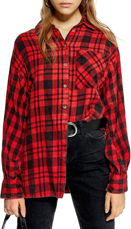 Topshop Oversized Plaid Button Down