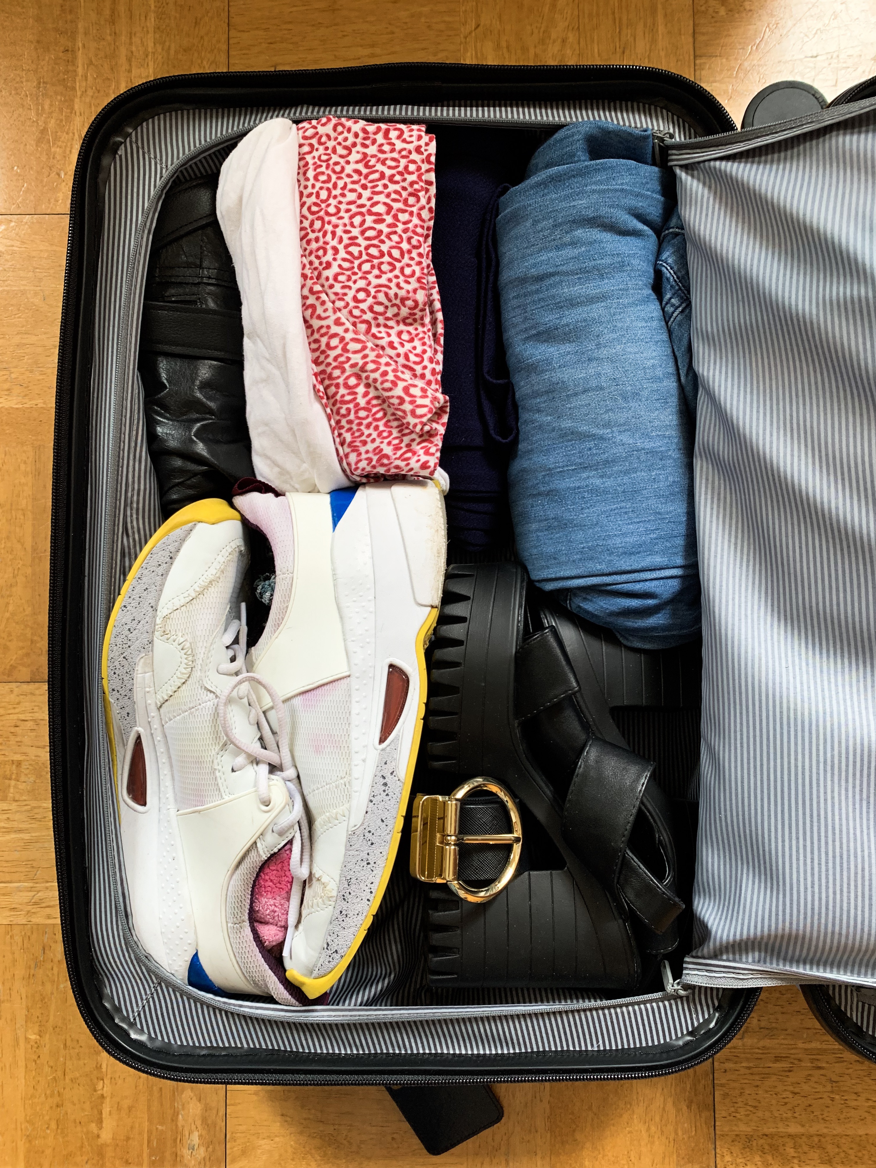 To save both space and carry on weight (I was only allotted 10 kilos or 22lbs), I elected to wear my heavier Levi’s denim and Dr. Martens on my flight. Though you may not find this as comfortable, these are items I wear often and am most comfortable in. Plus, knowing these items would hinder my carry on packing space and weight, for me it was well worth it to wear these items on my flight!