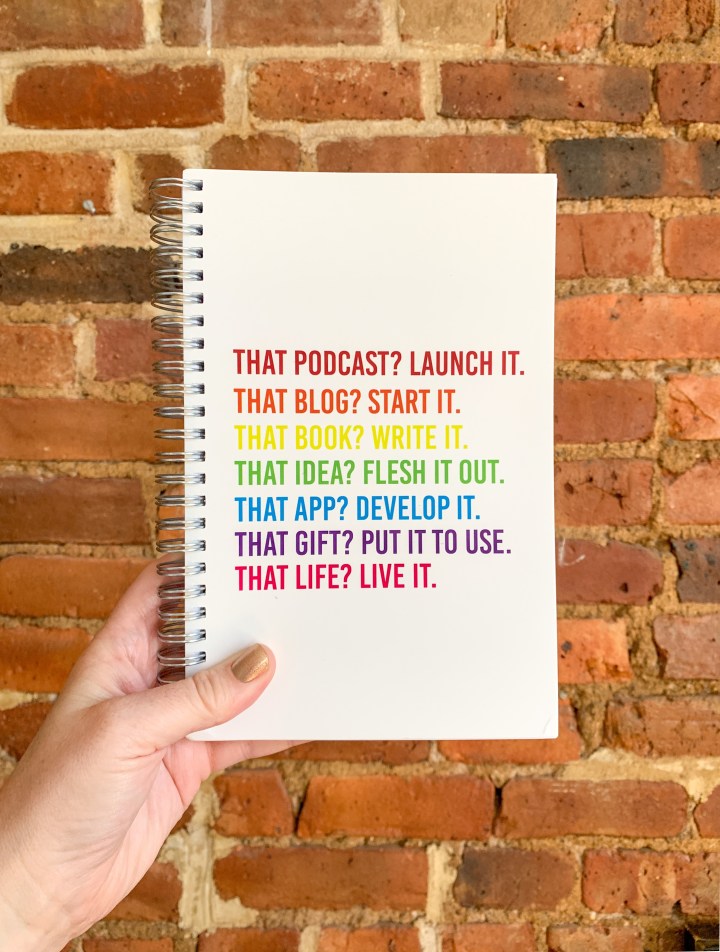 The “Live Life” spiral notebook of course!!! It’s the perfect place for writing morning pages while doubling as the perfect desktop pop of color!